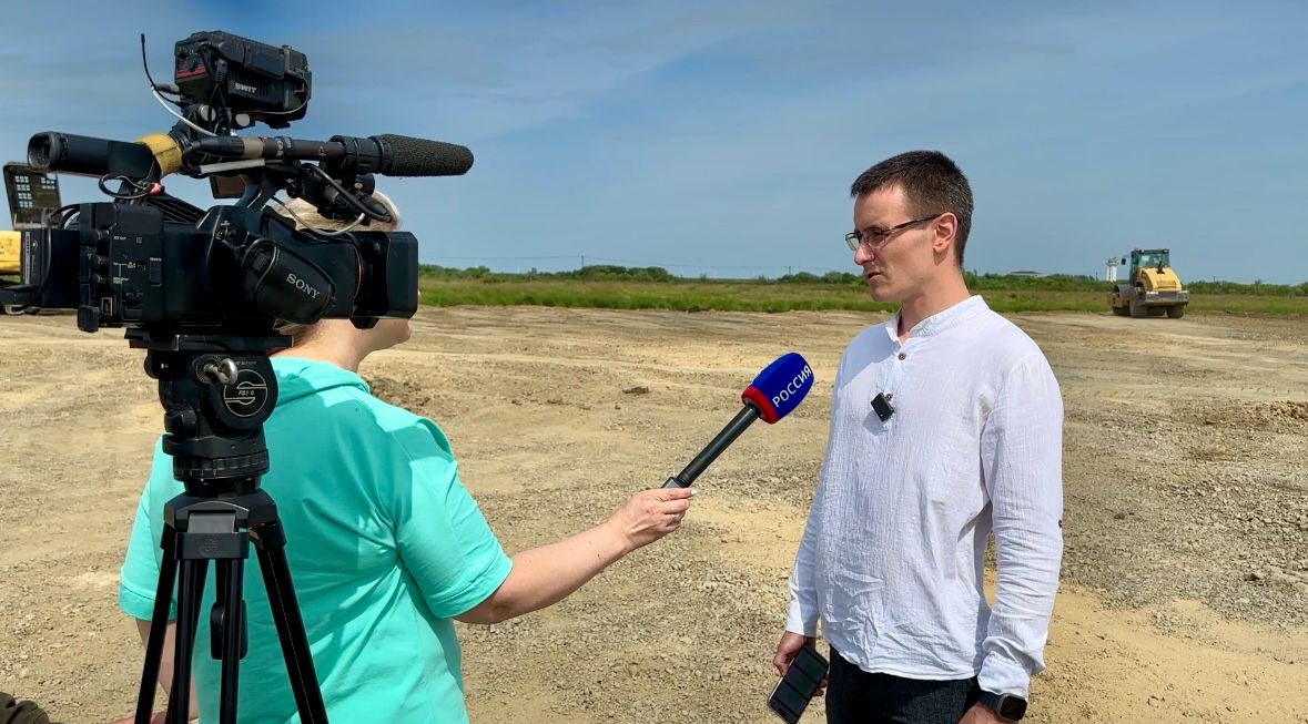 Генеральный директор «Дальневосточного проектного центра» Никита Божок вместе с представителями подрядчика на месте рассказал съёмочной группе телекомпании ГТРК «Дальневосточная» о ходе работ.